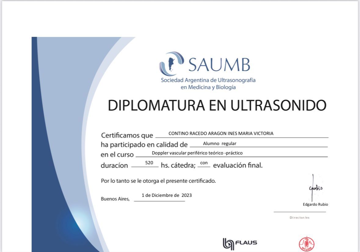 Me especialicé en Flebología y Linfología a través del Curso Superior de la Asociación Médica Argentina, y luego realicé un fellowship en el Hospital Militar Central (UBA), que me permitió profundizar en el abordaje integral de las enfermedades venosas y linfáticas. Además, completé una diplomatura en ecodoppler arterial y venoso en la SAUMB, herramienta clave para brindar diagnósticos precisos y tratamientos personalizados.